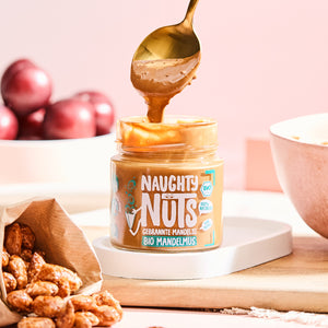 • Bio Mandelmus mit knusprigen karamellisierten Mandelstückchen